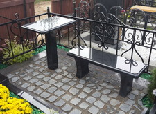 Установка гранитных лавочки и столика,